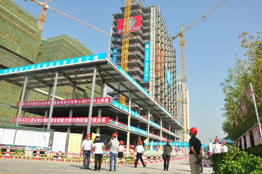 2017年10月26日上午,廣東省首例,全裝配式鋼架結(jié)構(gòu)+ALC綠色建筑體系示范項目--庫馬克大廈主體結(jié)構(gòu)封頂儀式在深圳光明新區(qū)庫馬克大廈工地隆重舉行。